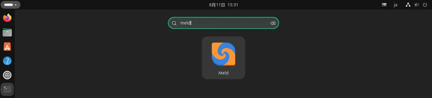 sudo apt install meldBashインストールが完了したら、以下のようにターミナルで起動できます